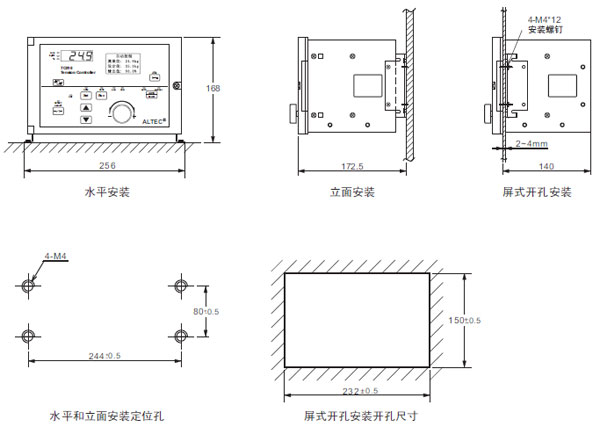 TC818張力控制器可采用水平安裝、立面安裝或屏式開孔安裝方式: